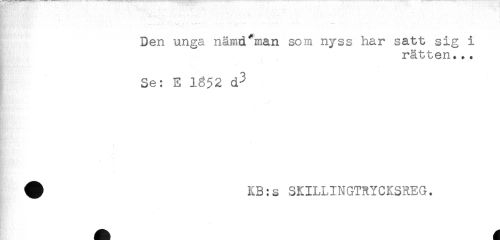 //// - - .. - //// Den unga nämd"man som nyss har satt sig i //// rätten... //// Se: E 1352 d^ //// ^ KB:s SKILLINGTRYCKSREG. ////