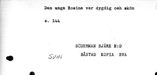 //// Den imga Rosina var dygdig o%h skön ^ //// s+ 144 //// SÖDERMAN BJÄRE H:D //// ^ BÅSTAD KOPIA SVA ////