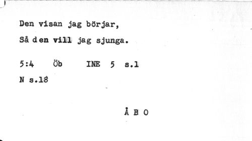 //// * //// Den visan jag börjar, //// Så den vill jag sjunga. //// 5:4 Öb INE 5 s.l //// N s.13 ////