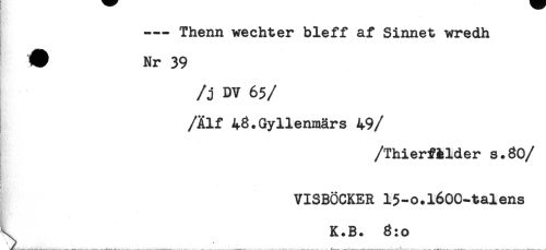 //// ---Thenn wechter bleff af Sinnet wredh //// # Nr 39 //// C //// /j DV 65 //// //Xlf 43.Gyllenmärs 49 //// //Thierfilder s.SO //// /VISBÖCKER 15-o.1600-talens //// L K.B. 3:o ////