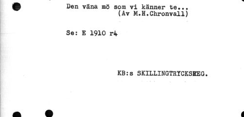 //// ^ vancL mo som vi Känner &e... //// (Av M.H.Chronvall) //// Se: E 1910 r4 //// i. //// Cr - //// KB:s SKILLINGTRYCKSREG. //// - :: ////