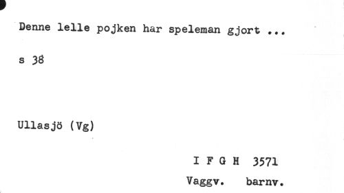 //// Denne lelle pojken har speleman gjort ... //// s //// Ullasjö (Vg) //// i* //// I F G H 3571 //// Vaggv. barnv. ////