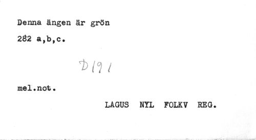 //// Benna ängen är grön //// 232 a,b,c. //// //// /mel.not. //// LAGUS NYL FOLK V REG. ////