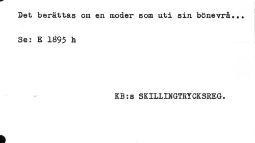 //// ) //// Det berättas om en moder som uti sin bönevrå... //// Se: E 1895 h //// KB:s SKILLINGTRYCKSREG. ////