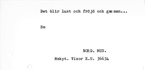 //// <* * { //// Det blir lust och fröjd och ganman... //// Sm //// NCRD. MUS. //// Mskpt. Visor E.U. 36634 ////