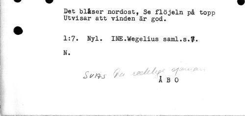 //// Det blåser nordost, Se flöjeln på topp //// Utvisar att vinden är god* //// ]) //// 1:7. Nyl. INE.Wegelius saml.s.%. //// N. //// By' //// ^ " AB o ////