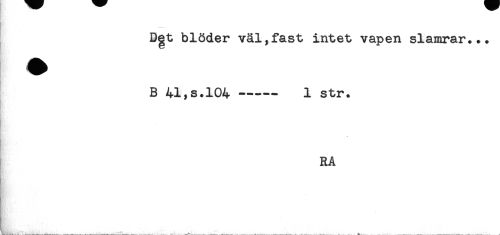 //// Dgt blöder väl,fast intet vapen slamrar... //// B 41,s.104----- 1 str. //// RA //// h* ' ////