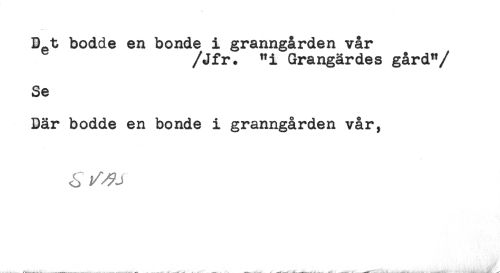//// Egt bodde en bonde i granngården vår //// /Jfr. "i Grangärdes gård" //// /Se //// Bär bodde en bonde i granngården vår, ////
