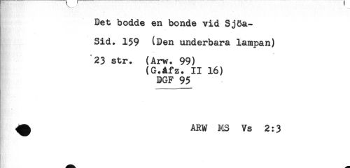 //// Det bodde en bonde vid Sjöa- //// Sid. 159 (Den underbara lampan) //// 23 str. (Arw. 99) //// (G.åfz. II 16) //// DGF 95 //// - - <1 ) n [ m ———— //// ^ ARW MS Vs 2:3 //// t J'6' ////