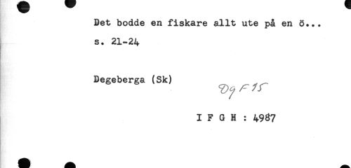 //// Det bodde en fiskare allt ute på en ö+.. //// s. 21-24 //// Degeberga (Sk) //// I F G H : 4987 ////