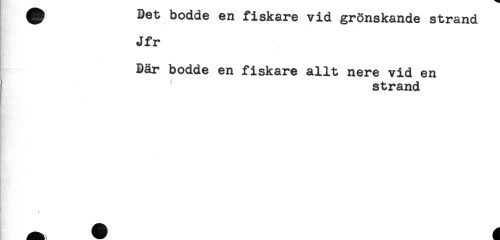 //// ^ Det ooaae en iiskare vid grönskande strand //// Jfr //// Där bodde en fiskare allt nere vid en //// strand //// Kr ////