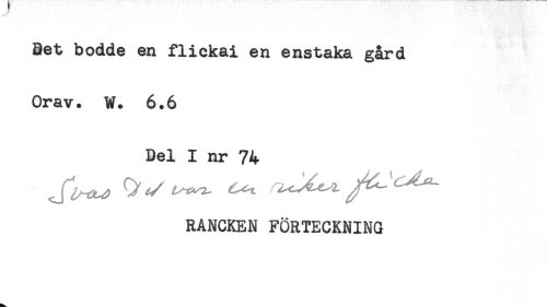 //// Bet bodde en flickai en enstaka gård //// Orav. W. 6.6 //// Del I nr 74 //// RANCKEN FÖRTECKNING ////