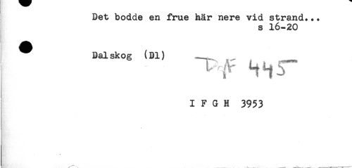 //// Bet bodde en frue här nere vid strand... //// s 16-20 //// — //// Dalskog (Dl) //// I F G H 3953 //// B? , ' . ////