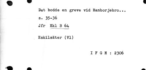 //// Bet bodde en greve vid Hanborjebro... //// s. 35-36 //// Jfr Ekl B 64 //// "" ' //// Eskilsäter (VI) //// I F G H : 2306 ////