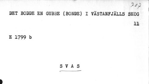 //// DET BODDE EN GUBBE (BONBE) I VÄSTANFJÄLLS SKOG //// 11 //// E 1799 b //// t //// S V A S ////