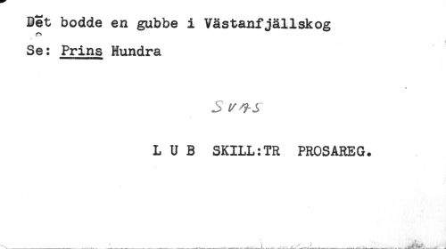//// Det bodde en gubbe i Västanfjållskog //// Se: Prins Hundra //// L U B SKILL:TR PROSAREG. ////