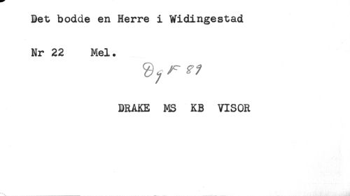//// Det bodde en Herre i Widingestad //// Nr 22 Mel. //// DRAKE MS KB VISOR ////