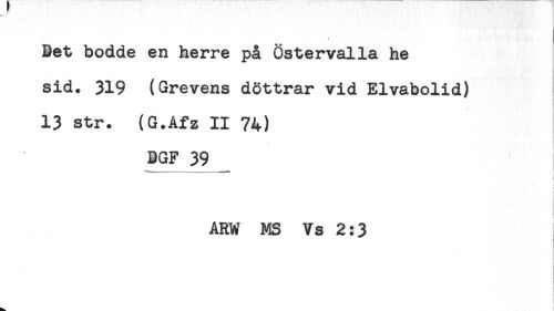 //// ) //// Bet bodde en herre på Östervalla he //// sid. 319 (Grevens döttrar vid Elvabolid) //// 13 str. (G.Afz II 74) //// < //// BGF 39 //// .. .,,-....-Ht* //// i //// i //// i //// ! //// i //// ) //// ARW MS Vs 2:3 //// < //// ] //// ! ////