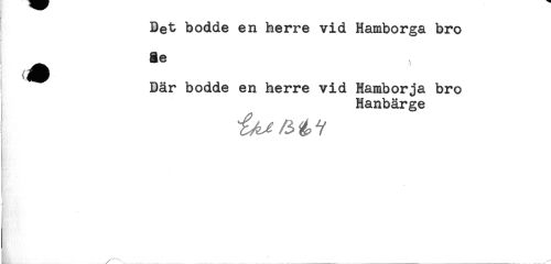 //// Bet bodde en herre vid Hamborga bro //// # ae //// Bär bodde en herre vid Hamborja bro //// Hanbärge //// i ////