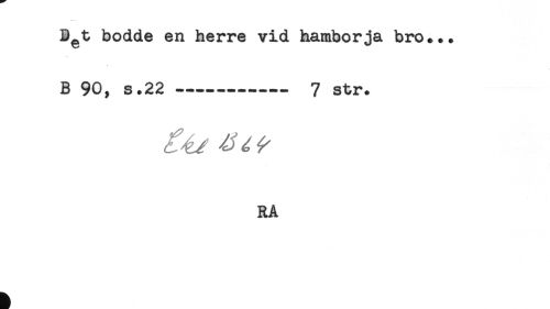 //// Dgt bodde en herre vid hamborja bro... //// B 90, s.22--- 7 str. //// RA ////