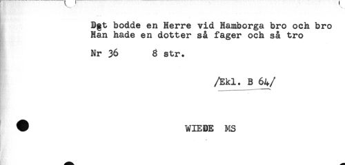//// Dgt bodde en Herre vid Hamborga bro och bro //// Han hade en dotter så fager och så tro //// Nr 36 8 str. //// B 64 //// /# WIEDE MS //// - ////