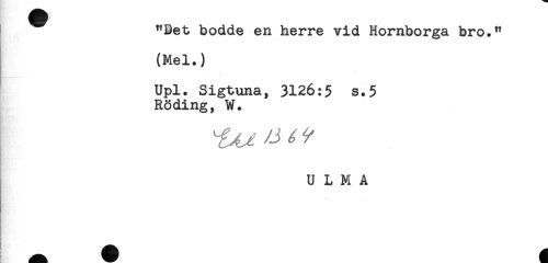 //// < B //// "Det bodde en herre vid Hornborga bro." //// (Mel.) //// Upl. Sigtuna, 3126:5 s.5 //// Röding, W. //// U L M A ////