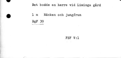 //// Bet bodde en herre vid Liminga gård //// ^ 1 m Näcken och jungfrun //// DgF 39 //// FSF V:1 //// ... -s ////