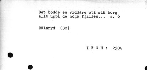 //// ! " .... ' //// Det bodde en riddare uti sih borg //// allt uppå de höga fjällen... s. 6 //// Bälaryd (Sm) //// I F G H : 2504 ////