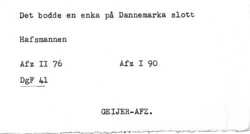 //// Det bodde en enka på Dannemarka slott //// Hafsmannen //// Afz II 76 Afz I 90 //// DgF 41 //// GEIJER-AFZ. ////