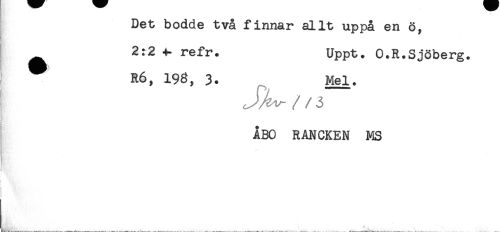 //// Det bodde två finnar allt uppå en ö, //// 2:2 +- refr. Uppt. O.R.Sjöberg. //// R6, 198, 3. Mel. //// I ABO RANCKEN MS //// < ////