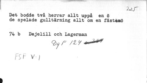 //// ! //// Det bodde två herrar allt uppå en 8 //// de spelade gulltärning allt om en fäst^mö //// 74 b Dejelill och Lagerman //// r^ vj //// i //// i //// t //// t ////