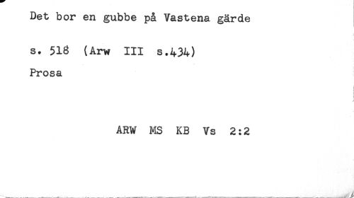 //// Det bor en gubbe på Vastena gärde //// s. 51g (Arw III s.434) //// Prosa //// i //// ! //// ARW MS KB Vs 2:2 ////