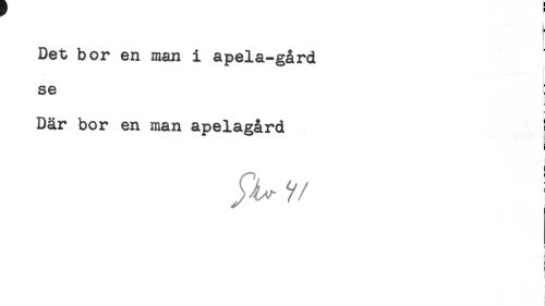 //// L //// ? //// ! //// Det bor en man i apela-gård //// se ; //// Där bor en man apelagård ! //// r //// f //// ! //// t //// i //// ! //// ! //// ! //// t ////