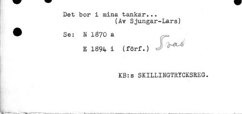 //// Det bor i mina tankar... //// (Av Sjungar-Lars) //// ^ Se: N 1670 a //// E 1894 i (förf.) //// . .. //// KB:s SKILLINGTRYCKSREG. //// f ////