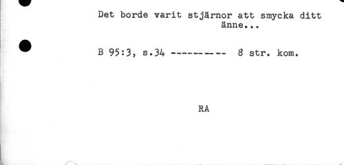 //// Det borde varit stjärnor att smycka ditt //// änne* +. //// ^ B 95:3, s.34 ——---- 6 str. kom. //// t //// RA //// L - ^ .......-.... ////