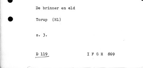 //// De brinner en eld //// # Torup (Hl) //// < //// s. 3* //// D 119. I F G H 869 //// L . _____ . ___ ////