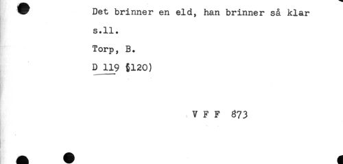 //// ^ Det brinner en eld, han brinner så klar //// s.ll. //// Torp, B. //// D 119 §120) //// *** //// * //// V F F 673 //// . //// —t — ////