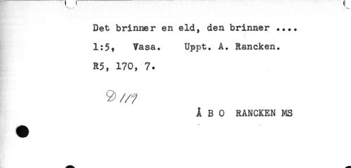 //// Det brinner en eld, den brinner .... //// 1:5) Vasa. Uppt. A. Rancken. //// R5, 170, 7. //// ÅBO RANCKEN MS ////