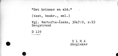 //// ... . . " - - - - .... //// "Det brinner en eld." //// (text, beskr., mel.) //// . ... ** //// Vgl. Vartofta-Åsaka, 3247:9, s.93 //// Bergstrand //// D 119 ////