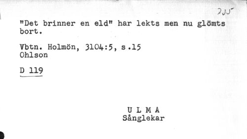//// t //// "Det brinner en eld" har lekts men nu glömts //// bort. //// * ^ //// Vbtn. Holmön, 3104:5, s.15 //// Ohlson //// D 119 ////
