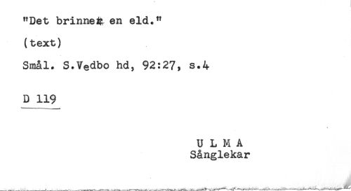 //// Smal. S.Vedbo hd, 92:27, s.4 //// D 119 //// U L M A //// Sånglekar //// ---A---- ----^ ---^ . .---^ --- ////