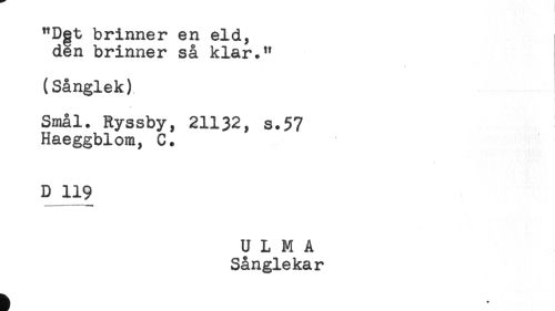 //// * //// (Sånglek) //// Smål. Ryssby, 21132, s.57 //// Haeggblom, C. //// D 119 ////