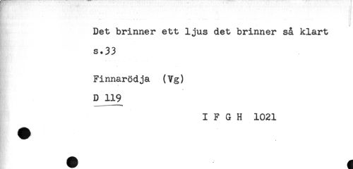 //// ... - . . . .' ' . 'i //// ..... //// Det brinner ett ljus det brinner så klart //// s.33 //// Finnarödja (Vg) //// D 119 //// I F G H 1021 ////
