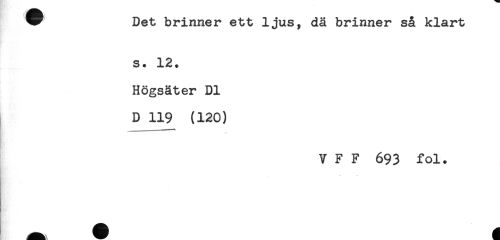//// * Det brinner ett ljus, då brinner så klart //// s. 12. //// Högsäter Dl //// D 119 (120) //// ---——— //// V F F 693 fol. ////