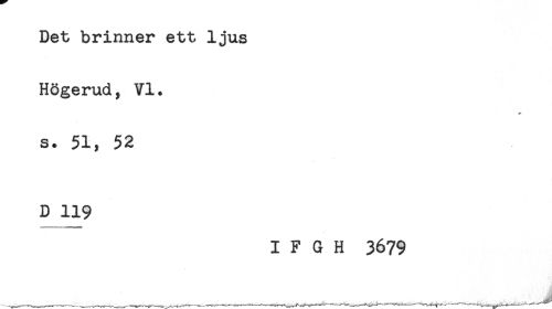 //// Det brinner ett ljus //// Högerud, VI. //// * //// s. 51, 52 //// D 119 //// I F G H 3679 ////