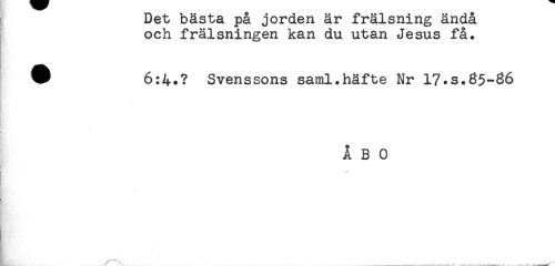 //// Det basta pa jorden ar frälsning anda //// och frälsningen kan du utan Jesus få. //// ^ 6:4.? Svenssons saml.häfte Nr 17*s.85-86 //// ÅBO //// j ////