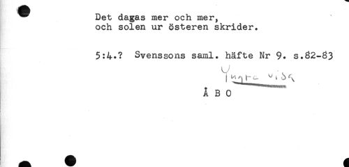 //// ^ Det dagas mer och mer, //// och solen ur österen skrider. //// 5:4*? Svenssons saml. häfte Nr 9. s.32-33 //// ÅBO ////