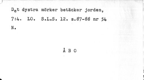//// Dgt dystra mörker betäcker jorden, //// 7:4. LO. S.L.S. 12. s.37-38 nr 54 //// N. //// ÅBO //// - //// t //// H //// * //// r //// L- //// s //// E ////