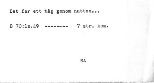//// Det far ett tåg genom natten... //// B 70:ls.49 --- 7 str. kom. //// RA //// . ___ ....... _ . __ ____ ___ _____,___,____^____.__-____^ ////