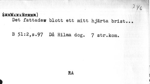 //// ! //// ^stxXxxxBxxmt) //// Det fattades blott ett mitt hjärta brist... //// ' ' ' ! //// B 51:2,s.97 Då Hilma dog. 7 str.kom. //// < //// i //// r //// RA , ////